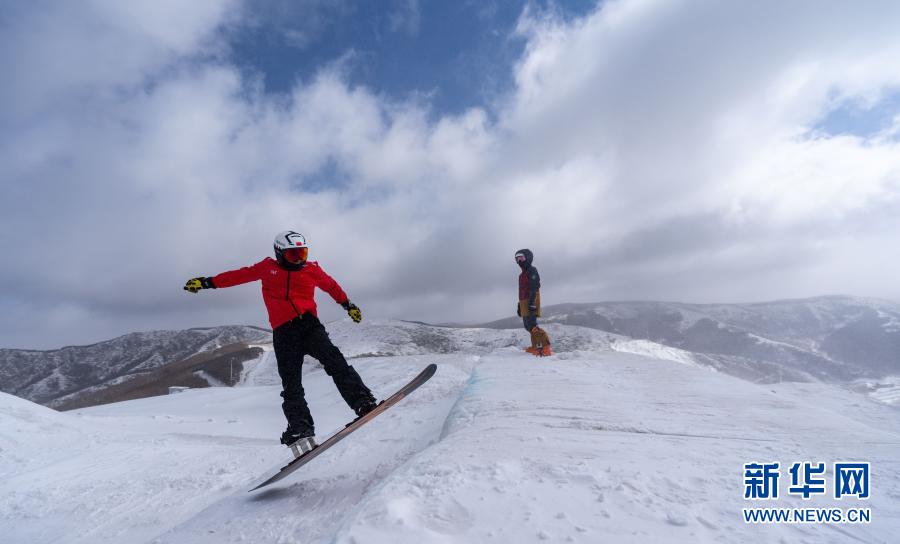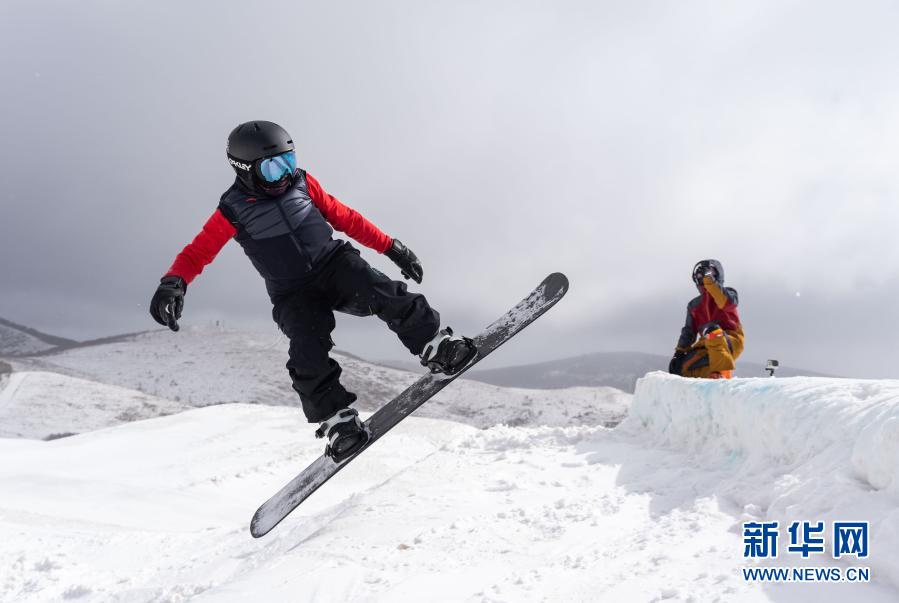 3月20日,冬残奥会国家集训队单板滑雪运动员贺一朋在冬残奥会训练基地训练。