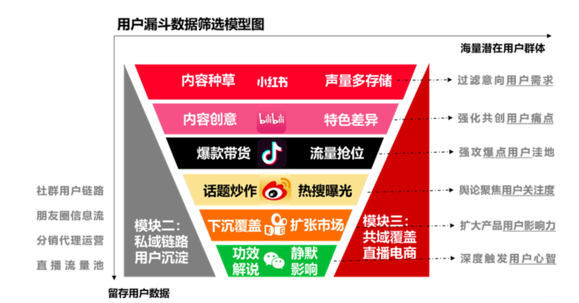 近年来不断兴起了各种形式的媒体传播渠道,如小红书、抖音、B站、快手等,国货美妆们抓住了这些新兴流量渠道兴起的红利,针对不同的营销渠道已形成了一套非常成熟的打法:通过小红书进行内容种草,B站负责内容创意,抖音主推爆款带货,微博引发话题炒作,快手实现下沉覆盖。