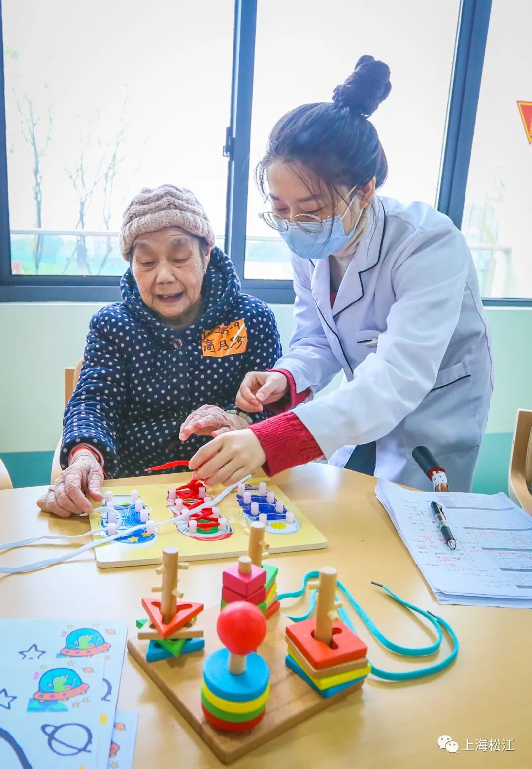 除了崭新的设施、设备,廊道里还特别布置了上世纪80、90年代松江具有代表性的地标,每一个房间的门牌也结合松江老路进行了命名,蒋莉庭住的房间门口就挂着“九曲弄205”便于她记忆。“我们考虑到认知症长者的生活能力和心理变化,希望通过这些支持性空间设计,重新唤起老人们对过去的记忆。”上海市第四社会福利院“记忆家园”小单元负责人说。