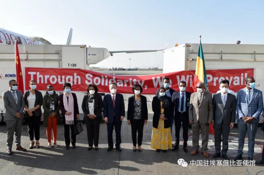 据中国驻埃塞俄比亚使馆公众号消息,2021年3月30日,中国政府援助埃塞俄比亚的新冠疫苗顺利运抵埃塞首都亚的斯亚贝巴。驻埃塞俄比亚大使赵志远、埃塞卫生部长莉娅、外交部国务部长伯图坎等赴机场迎接并出席疫苗交接仪式。