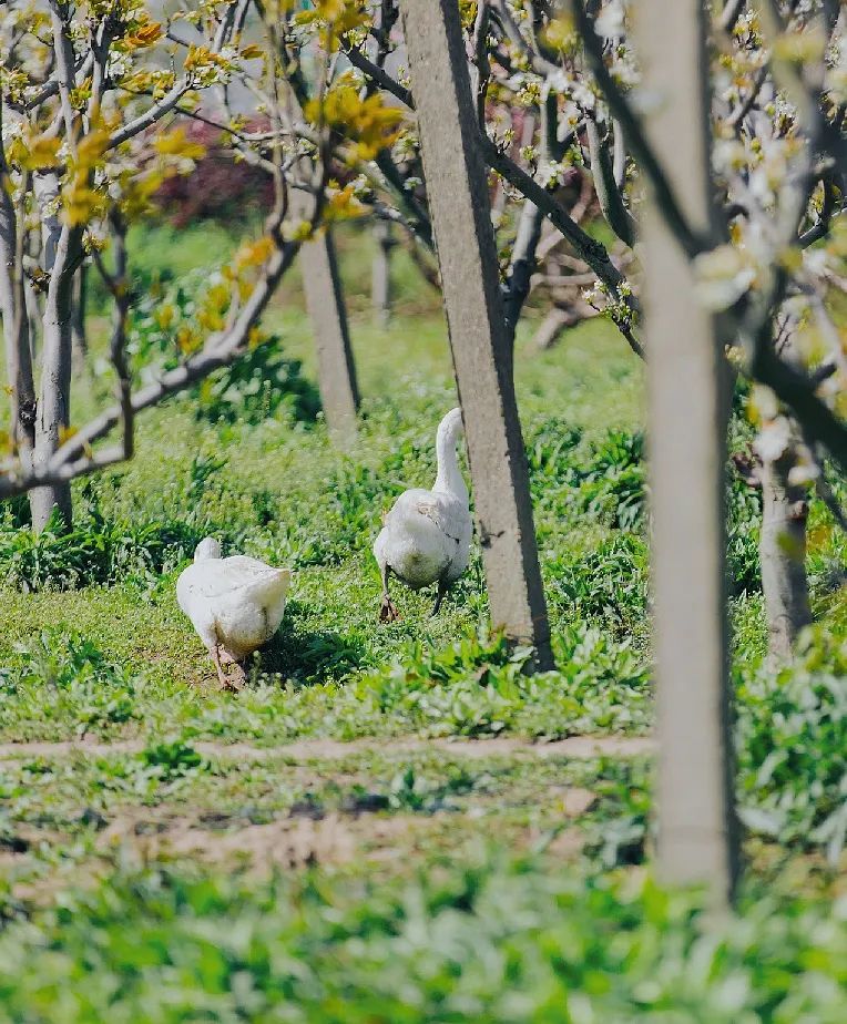 春日梨花香满园,秋日蜜梨压满枝。梨花的美总有一种纯稚的可爱。热情的园丁邀请小客人为盛放的梨花“点花授粉”,大白鹅在林下穿梭,一派田园野趣悠然。