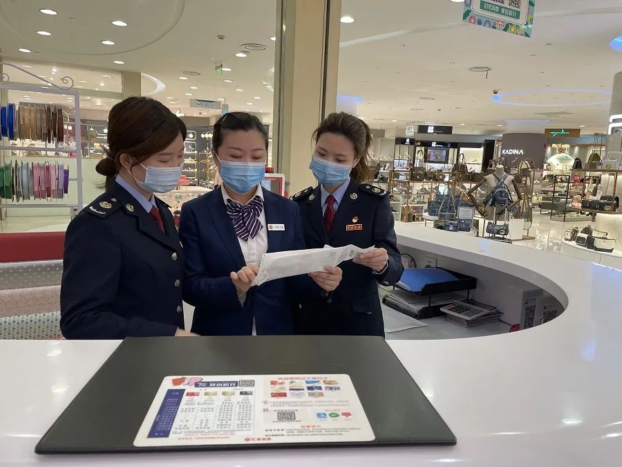 一年一度的“五五购物节”是徐家汇商圈十几家百货商场千余个品牌的一大盛事。为了帮助徐汇区的企业备战“五五”购物节,打响“上海购物”品牌,提振消费信心,4月6日,徐汇税务局党员干部来到徐家汇商圈,向上海徐家汇商城股份有限公司、上海汇金百货有限公司和上海汇联商厦有限公司等企业介绍了2021年“春风行动”的具体举措,进一步宣传发票专业配送等“非接触式”办税服务举措,并对电子税务局的操作使用进行了宣传辅导,对企业提出的个人所得税捐赠扣除、发票升版、电子发票管理等个性化问题,税务干部现场进行了解答,为企业送上政策“好礼”,再添“东风”。