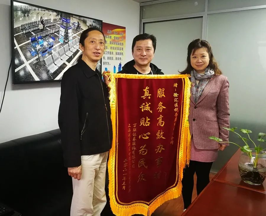 万联证券股份有限公司上海浦东新区世纪大道证券营业部是天平街道与衡复功能区的重点企业。由于企业总部在广州,申报材料盖章需要在广州、上海往返至少1-2周时间。要是等“申报”“代开”两个环节材料都盖章完毕后再来税务局申报,就会出现逾期产生滞纳金的问题。为优化营商环境,纳税服务科党支部充分发挥党员先锋模范作用,针对此类特殊情形创新“容缺办”机制:对提供的相关资料不齐全但不影响实质性审核的,经纳税人做出书面补正承诺后,可暂缓提交纸质资料,按正常程序为其“容缺”办理。证券营业部经理陈蔚欣然感慨:“徐汇区税务局真是为纳税人着想,想纳税人所想,急纳税人所急,本来以为很复杂的事情一下子给我办好了!”送来“真诚贴心为民众服务高效办实事”的锦旗表示感谢。