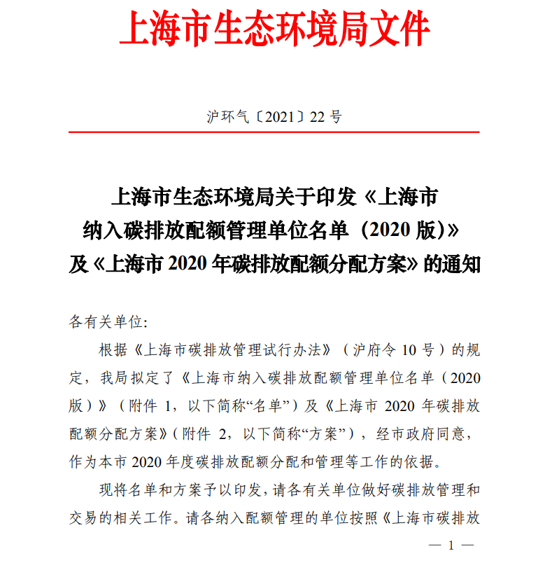 今年2月,上海市生态环境局印发了《上海市纳入碳排放配额管理单位名单(2020版)》及《上海市2020年碳排放配额分配方案》的通知,纳入碳排放配额管理的单位都有一个碳排放量的“天花板”。
