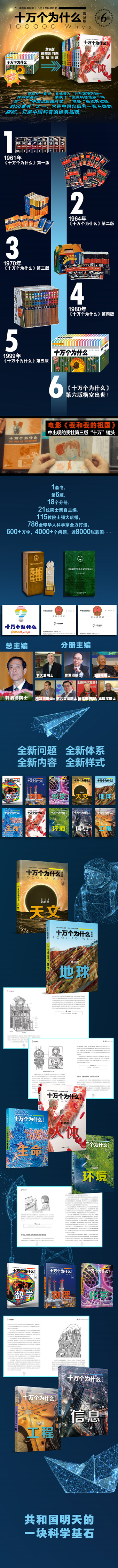 从1961年的第一版问世至今,《十万个为什么》已连续出版至第6版,成为影响数代少年儿童成长的科普读物,“十万个为什么”品牌的历史,背后是少年儿童出版社对的细心培育以及几代作者的呕心沥血,也承载着读者的殷殷期待。