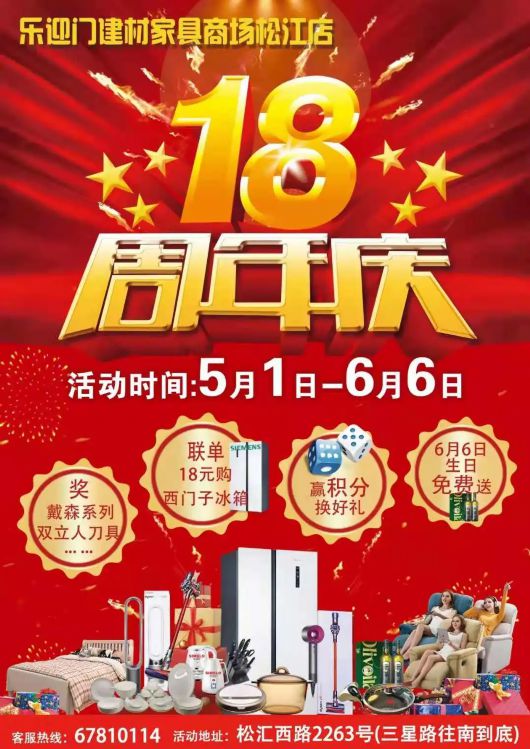 松江乐迎门结合18周年店庆,开展消费积分换好礼、幸运抽奖抽好礼、联单换购等多重促销活动。