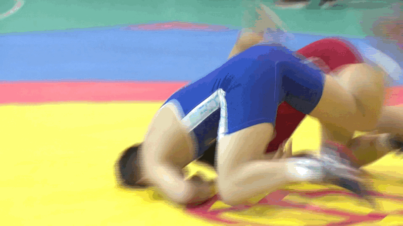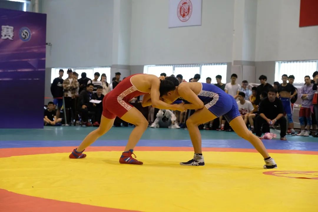 赛场上,随着裁判员的口令声响起,运动员们奋力拼搏,一次次大吼鼓劲或低声闷喊,多次呈现出了“反圈夹颈背”、“抱单臂摔”、“提抱摔”、“骑缠滚桥”的精彩瞬间。