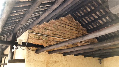 2021年进行修缮时,对毛泽东同志故居柴房屋顶进行了防腐、防虫处理。宋 斌摄