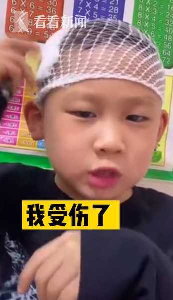 孩子妈妈方女士告诉看看新闻Knews记者,孩子玩耍时磕到了头,有个小口子留了点血,但不是很严重。孩子想趁此机会请假不去上学,便录了个视频让方女士发给老师,“录完之后他自己就非常兴奋,好像请完假,老师就给他假的那种感觉”。