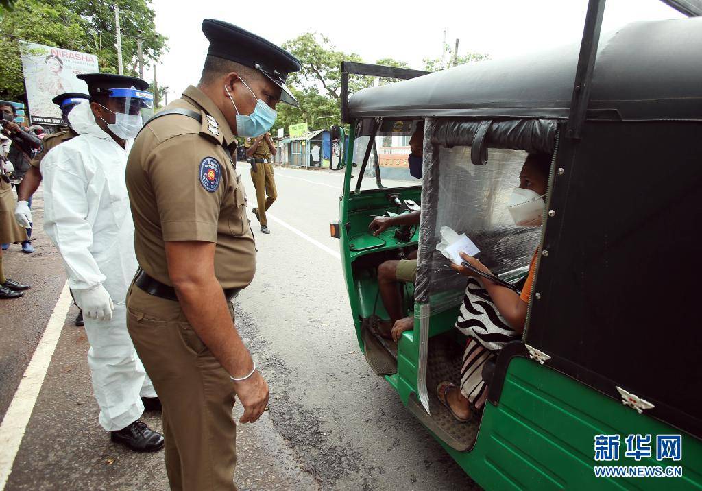 5月14日,警察在斯里兰卡科伦坡街头对出行车辆进行检查。