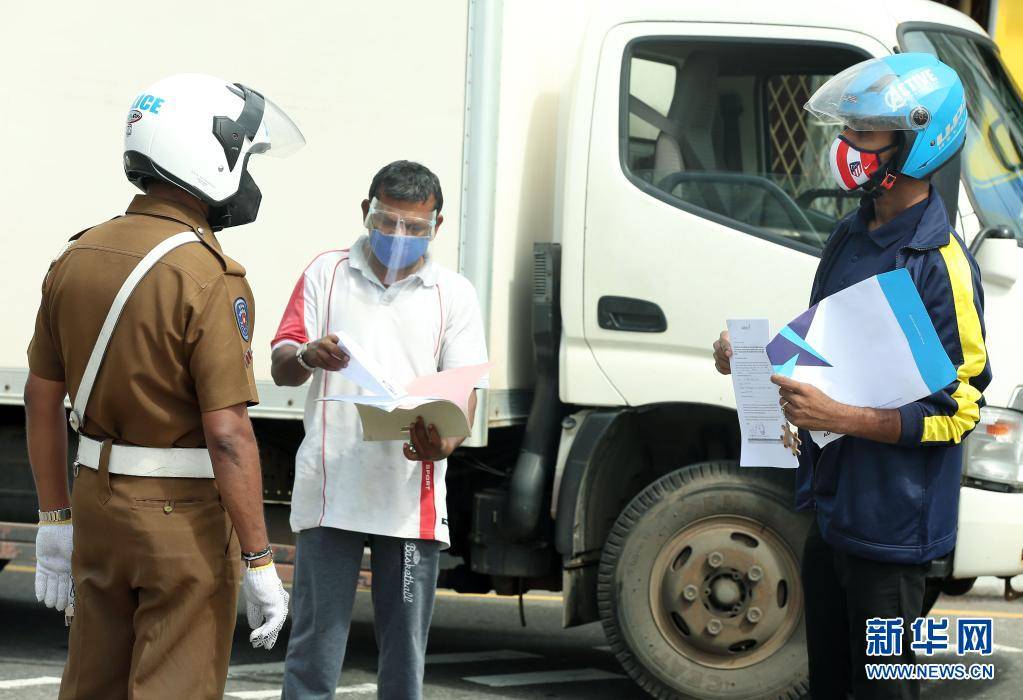 5月14日,警察在斯里兰卡科伦坡街头检查出行车辆司机的证件。
