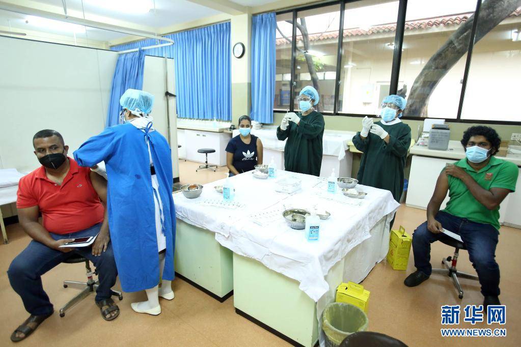 5月14日,人们在斯里兰卡科伦坡的接种中心接种疫苗。