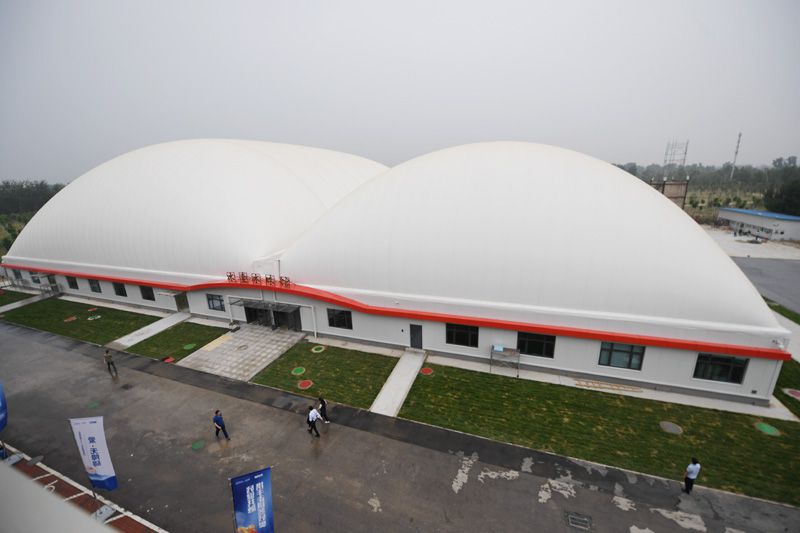 这是5月14日拍摄的北京市残疾人文化体育指导中心气膜式冰壶冰球运动馆。新华社记者 张晨霖 摄