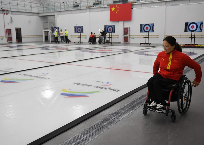 5月14日,轮椅冰壶运动员王蒙在北京市残疾人文化体育指导中心气膜式冰壶冰球运动馆参观。新华社记者 张晨霖 摄新华社记者 张晨霖 摄
