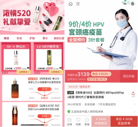 才毕业当上幼师的刘爽,则给自己送了一份520大礼——HPV疫苗。“长沙公立医院的疫苗很难约,我朋友等了一年也没排上。”刘爽说,自己平时喜欢在拼多多百亿补贴买平价彩妆和护肤品,一搜发现竟然还有HPV疫苗,“而且价格很划算,3000出头,还是现货”。