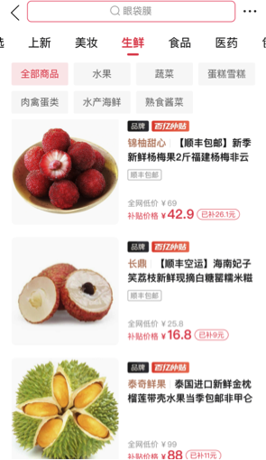 拼多多百亿补贴相关负责人介绍,应季生鲜也是平台补贴重点,像智利车厘子、丹东大草莓、荔枝、榴莲等热门水果,都被纳入补贴范围,希望帮助消费者实现“水果自由”。相关数据显示,截至2020年底,参与拼多多“百亿补贴”的国内外商品数已超过几十万家,补贴的全网热门商品超过上万款。