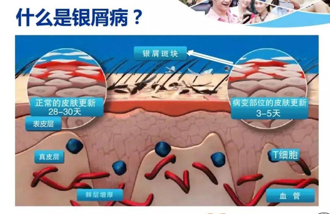 银屑病是一种自身免疫系统疾病,伴有皮肤突起、红色鳞状斑块等症状。它通常会出现在肘部、膝盖或头皮的外侧,甚至有可能出现在任何部位。中国银屑病流行病学调查显示,我国银屑病患病率为0.47% ,在总数约600多万银屑病患者中,80%-90%患者是斑块状银屑病,约30%的患者是中重度斑块状银屑病。在生物制剂出现之前,银屑病临床上多采用以激素为代表的局部用药和系统治疗的传统治疗方式,安全性较差,且效果不稳定,患者常面临反复发作、皮损不能完全清除等问题。上海交通大学医学院附属瑞金医院皮肤科主任郑捷解释说:“在上世纪的1950年代,最好的治疗方案是糖皮质激素。但是因为银屑病它是一个慢性、复发性、炎症性、系统性疾病,那么使用糖皮质激素停药以后很快就复发了,甚至有个别加重。糖皮质激素,对于所有的炎症都是通用的,不具有精准性。”