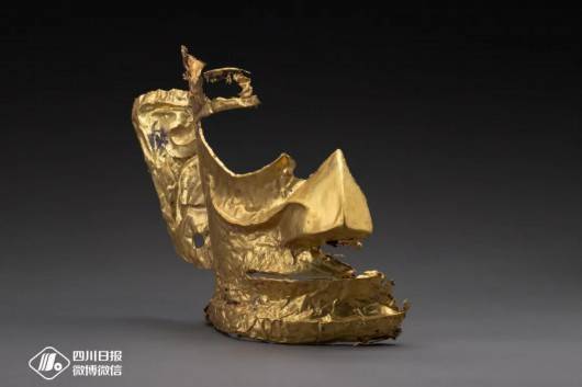 三星堆最新出土一件金面具残片,耳朵和嘴巴的轮廓清晰可见