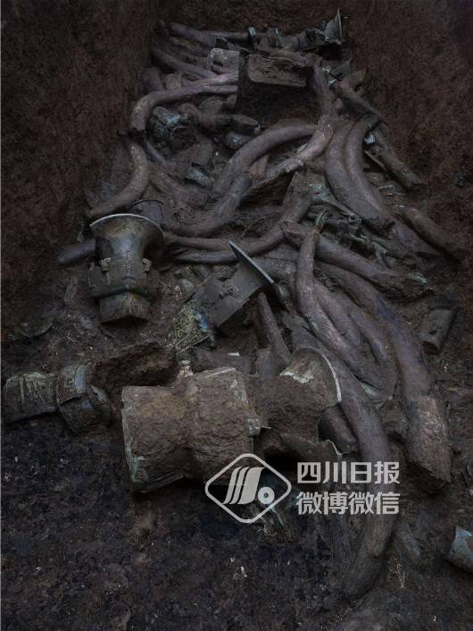 3、4号坑内象牙提取工作已基本完成,下一步将对众多揭露出来的青铜器进行发掘。