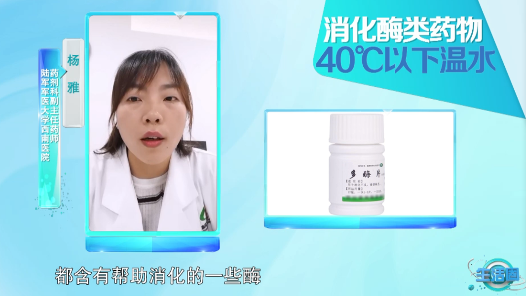 比如临床上常用的胰酶肠溶胶囊、多酶片,这些都含有帮助消化的一些酶。老年患者消化不好,就要服用这些消化酶来帮助消化,这种酶是一种活性的蛋白质,遇热之后就会凝固变性而失活,导致疗效下降或消失。