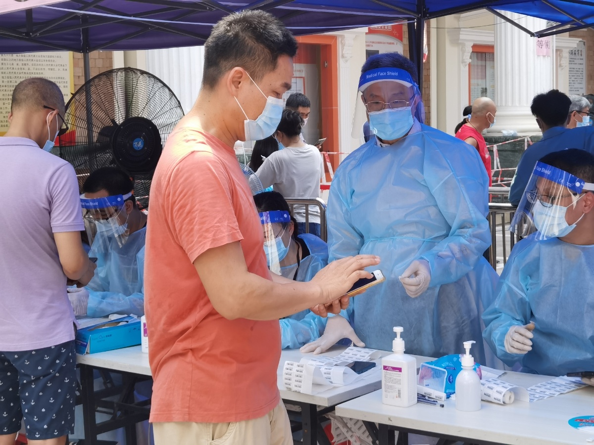 2021年6月3日,广东省佛山市南海区桂城,为有效排查新冠病毒感染者,桂城街道进行全员核酸检测。