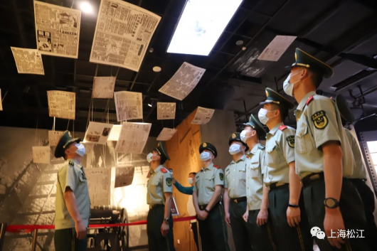 6月4日上午,武警上海总队某机动支队勤务保障大队结合党史学习教育,组织全体官兵参观上海四行仓库抗战纪念馆。