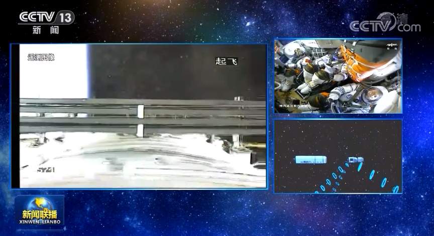 约573秒后,神舟十二号载人飞船与火箭成功分离,进入预定轨道,顺利将聂海胜、刘伯明、汤洪波3名航天员送入太空,飞行乘组状态良好,发射取得圆满成功。