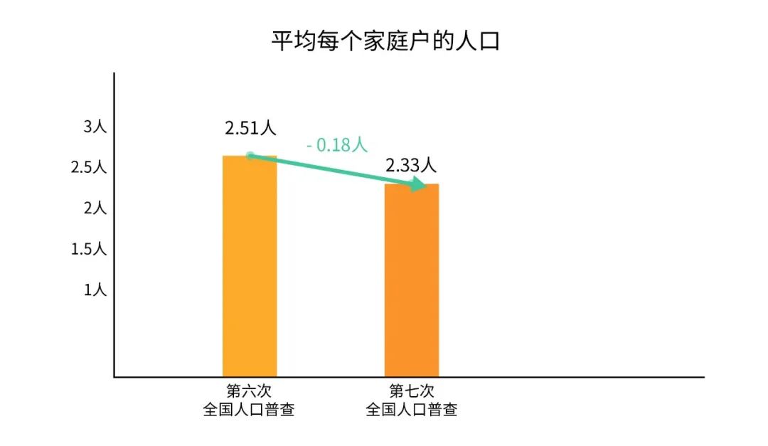 平均每个家庭户的人口为2.33人,比2010年第六次全国人口普查的2.51人减少0.18人。