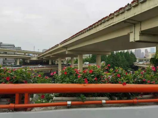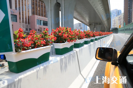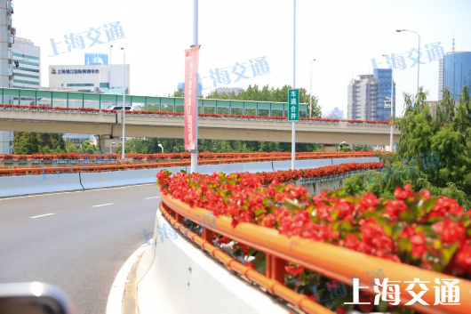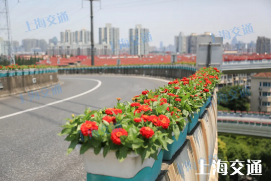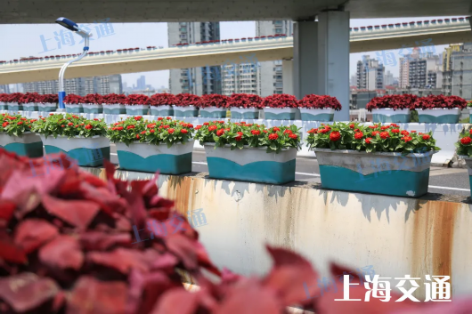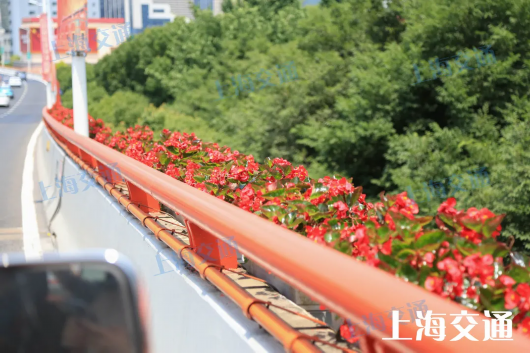 据了解,此次整体高架花盆绿化以红色为主题色,运用多层次红色,局部点缀粉色、紫色植物,以“红色律动”作为上海高架绿化主题,展现热烈而活力的城市精神。
