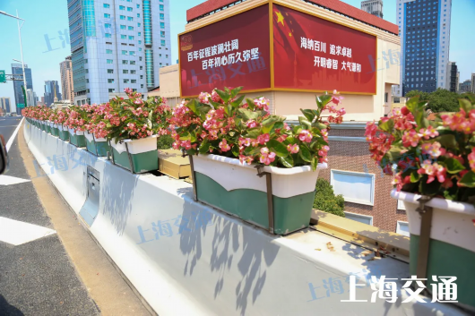 市交通委说,为迎党的百年华诞,本市内环高架路、延安高架路、南北高架路等主要高架道路护栏,被“三角梅”、“超级海棠”、“彩叶草”等多个品种近七万盆花装点一新,市民驾车出行时打开车窗就能感受到扑鼻而来的花香。详见↓