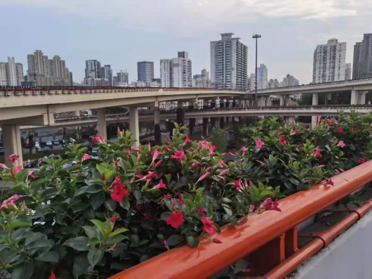 共和新路立交以“三角梅”为主,部分路段配有“双线藤”和“美人蕉”。
