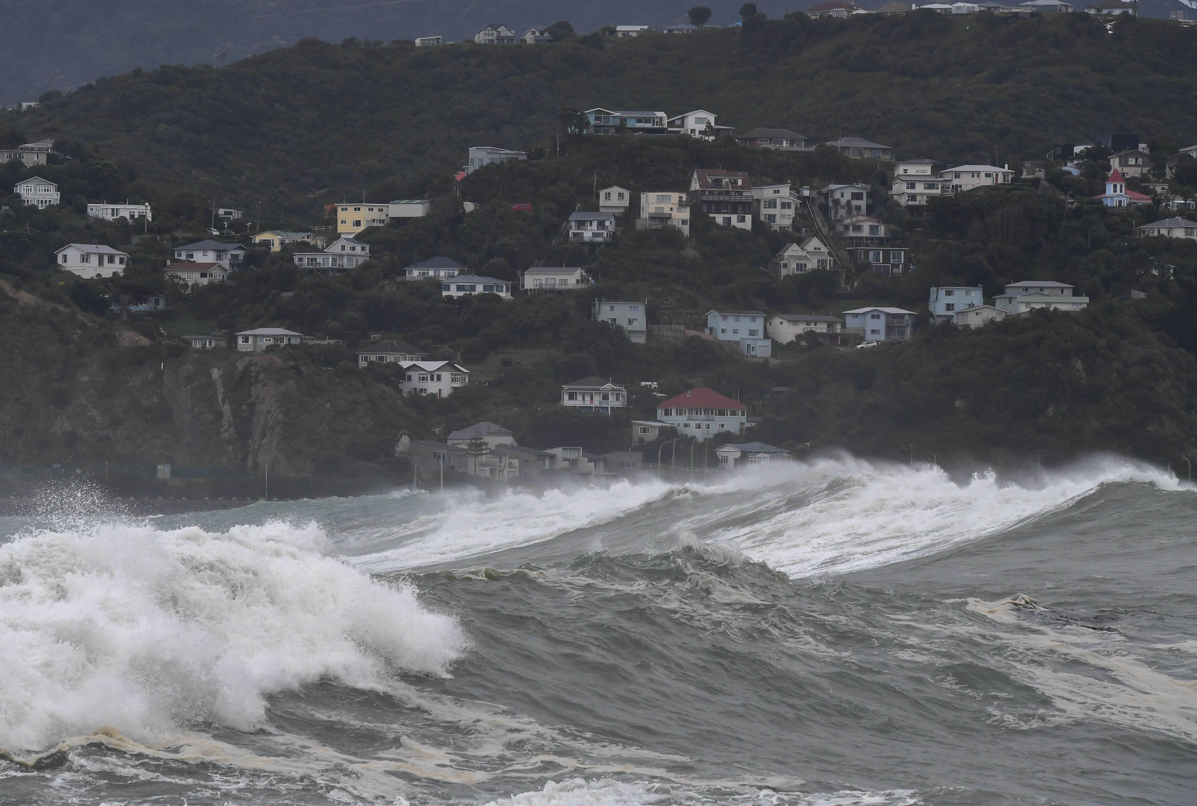 6月30日,新西兰首都惠灵顿南部海岸遭遇巨浪。