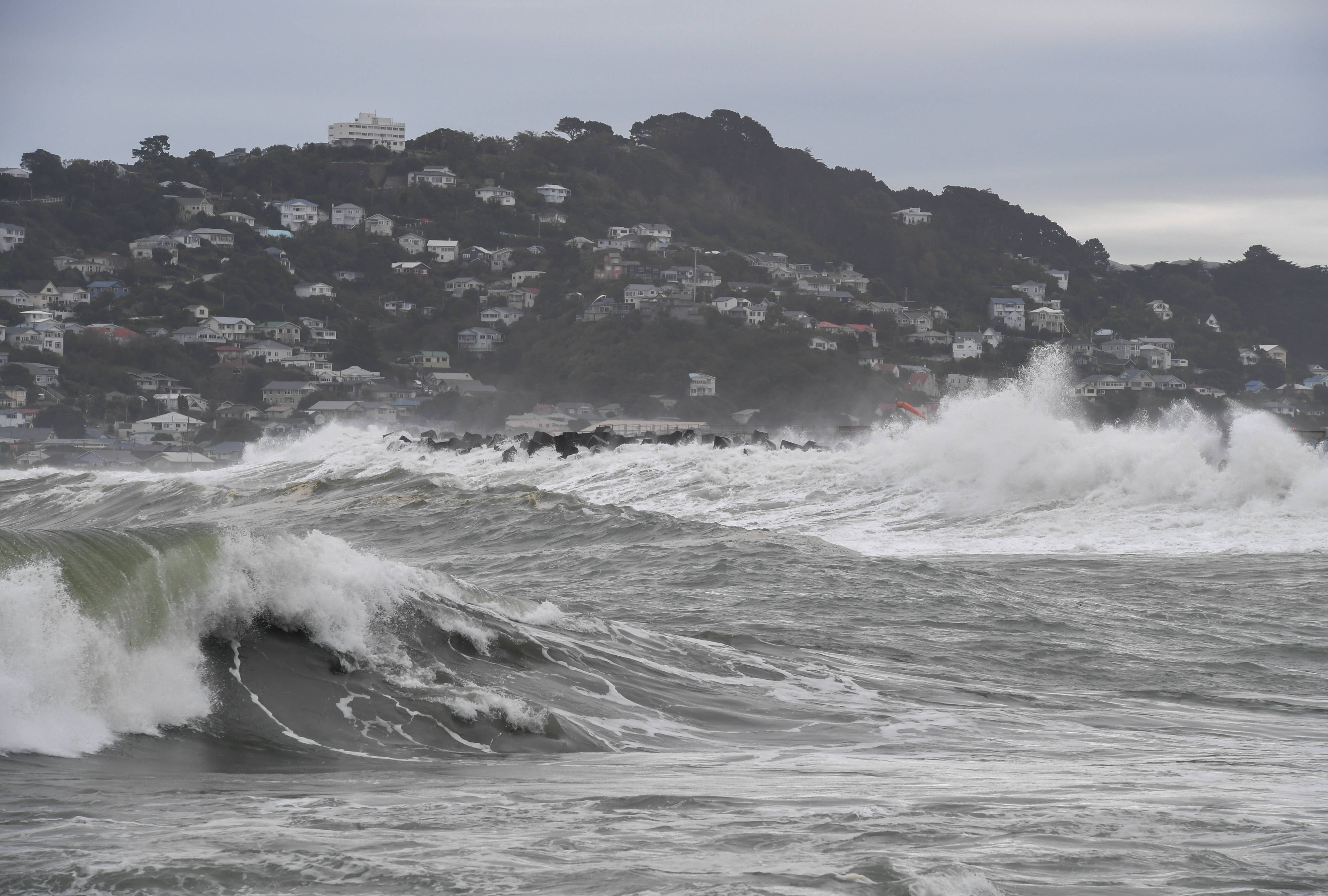 受极地风暴影响,从6月29日晚间开始,新西兰首都惠灵顿南部海岸遭遇罕见巨浪。据新西兰气象部门数据,部分巨浪浪高超过6米。