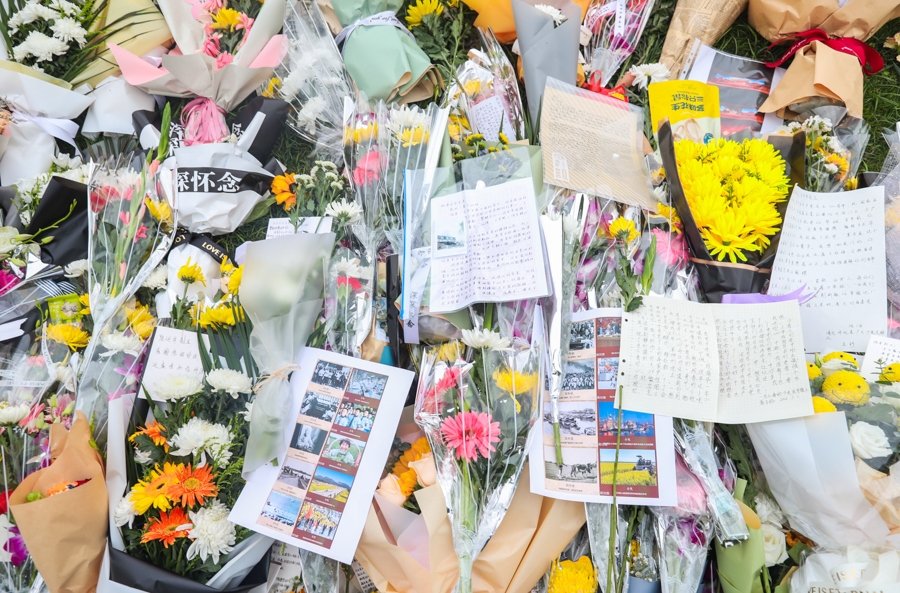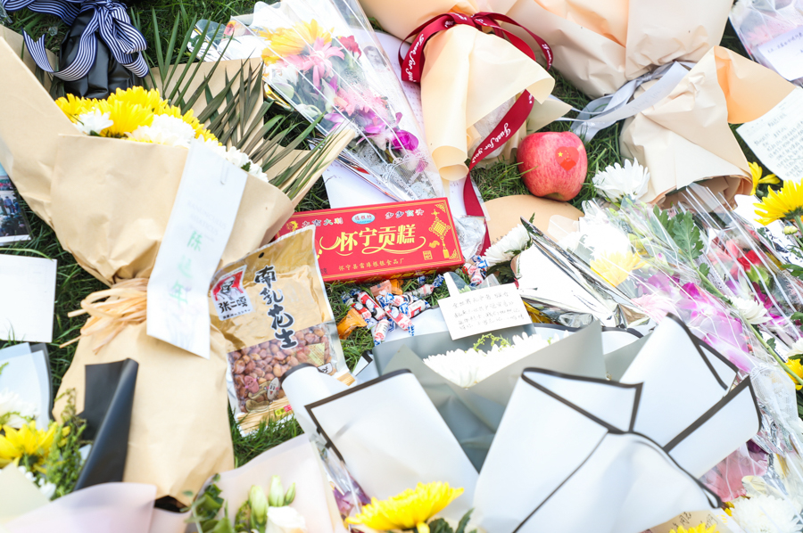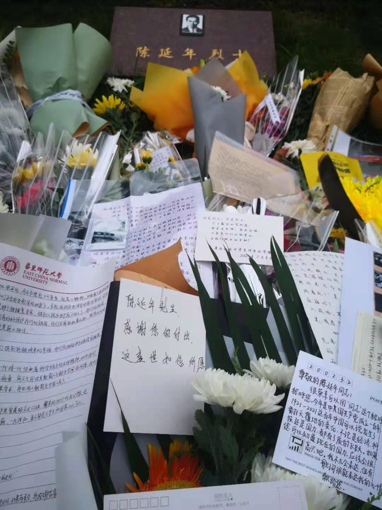 追思者敬献的鲜花和留下的信纸铺满了陈延年烈士墓。新华网林艳兴 摄