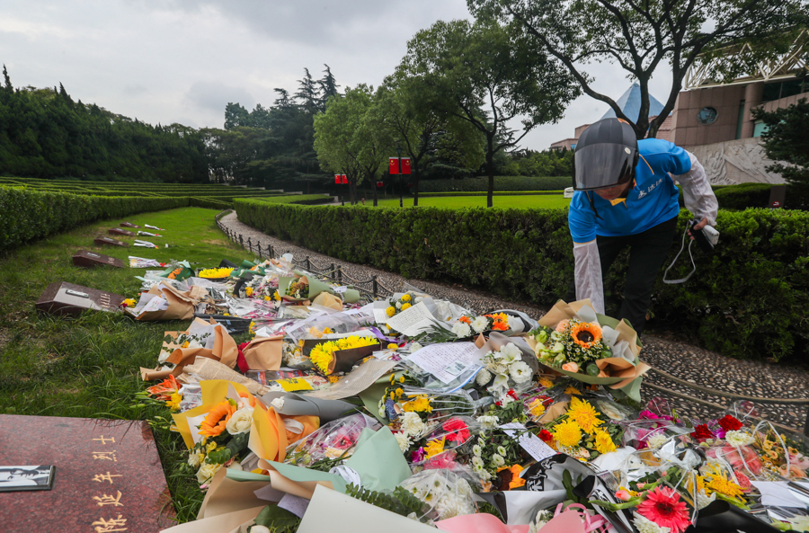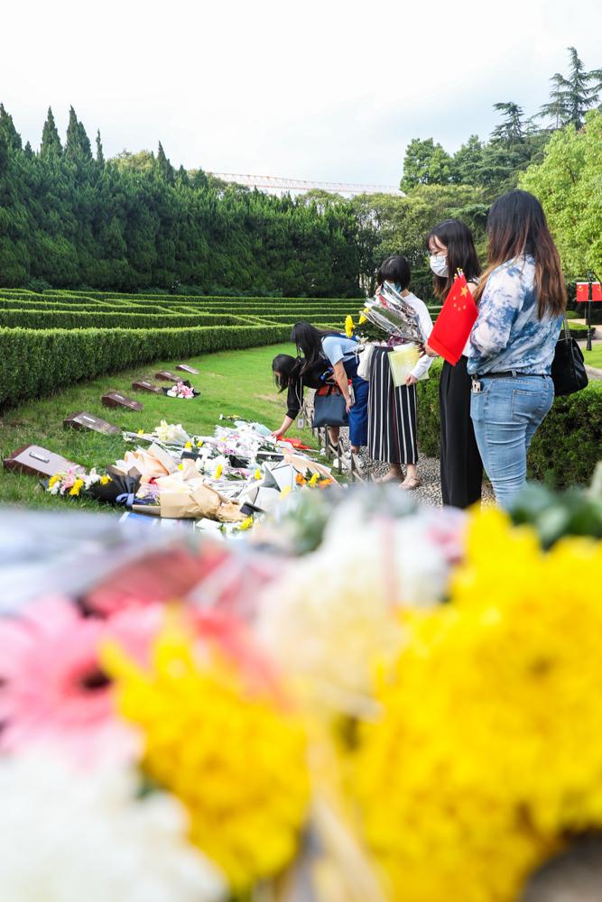 连日来,陵园墓区1000多座墓碑前都摆放着鲜花,有纯粹的白,有热烈的黄,或专程送来,或网购送达。