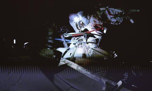 ▲7月4日,在北京航天飞行控制中心大屏拍摄的航天员在舱外工作场面。