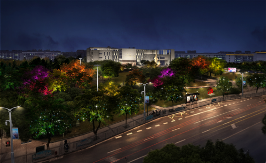 长兴路景观工程将绿化和建筑相结合,覆盖了城市绿化、市容、景观、照明4个重点,共同美化了原本较为单一的长兴路夜景。