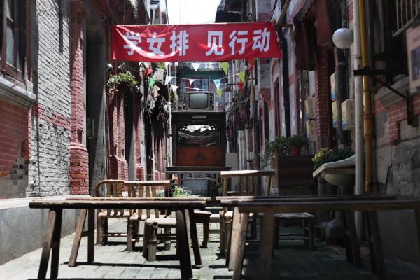 一条窄弄内,门窗中嵌入LED屏,普通人家的生活得以还原。