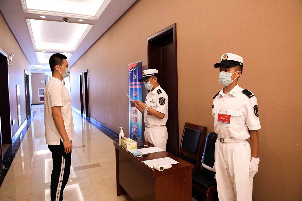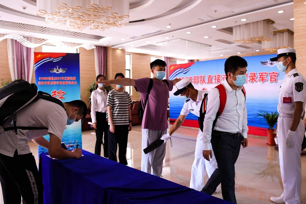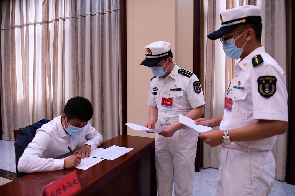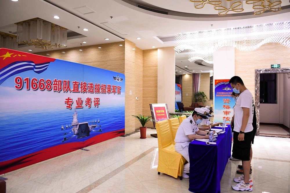 同时,此次考评采用结构化面谈和情景模拟相结合的方法组织,通过考官问询,更加全面了解考生整体素质,确保为部队选拔优秀人才。“我的舅舅是一名海军退伍老兵,小时候看着穿军装的舅舅心中满是崇拜。曾经他送给我一顶海军帽,戴上去看着很帅气,从那时我就立志长大之后一定要来海军。高中毕业时我报考了军队院校,但由于身体素质较差未能如愿,但参军入伍这个梦想始终没有冷却,大学4年我经常锻炼,时刻准备着,终于今年得知有直招军官这个机会,没有丝毫犹豫,我立即报名参加选拔,能有机会为国家出一份力。”考生吴子寒如是说。