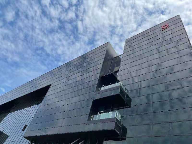 研发中心充满工业美学的黑色基调来自碲化镉发电玻璃和LOW-E采光玻璃幕墙完美结合。其中碲化镉发电玻璃,也是中国建材集团旗下凯盛科技集团所属企业自主研发并生产的新一代薄膜太阳能发电材料。和传统的晶硅光伏材料相比,这种通过在普通玻璃衬底上沉积化合物薄膜得到的光伏器件,有着弱光环境下发电性能优越、高温环境发电折损小、无惧局部遮挡导致的安全隐患、长期衰减率低以及在透光率和色彩上灵活定制等一系列特点,成为BIPV领域首选的新能源发电材料。