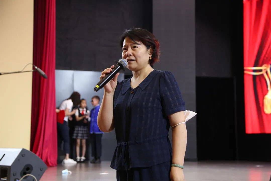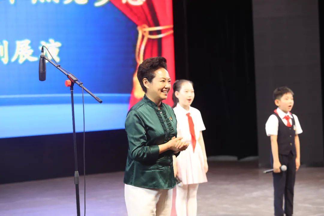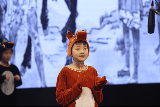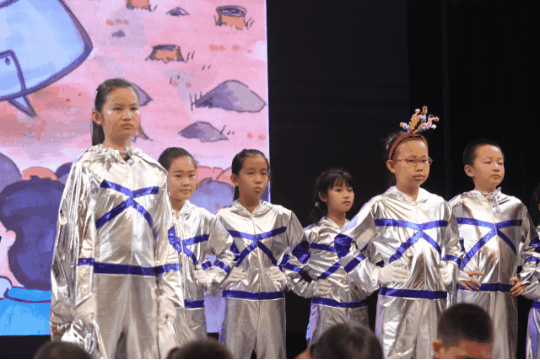 范汝梅副校长上台做了总结发言,对孩子们的精彩表现给出了温暖的鼓励和高度评价,并与孩子们一同互动,分享自己的感受,现场气氛达到了高潮。范校长也告诉了大家:这不仅仅是一出戏,更重要的是在这一过程中,大家了解了每一个故事的思想、文化、理念。与此同时,在排练、表演中,每一位同学都发现了一个不同的自己,希望大家能够因此而热爱戏剧,热爱艺术。