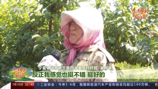 宁夏银川市贺兰县四十里店村村民 吴月苹:都是从咱们自己手里劳动出来的成果,反正我感觉也挺不错,挺好的。吃,那肯定心里是甜甜的那种感觉吧。