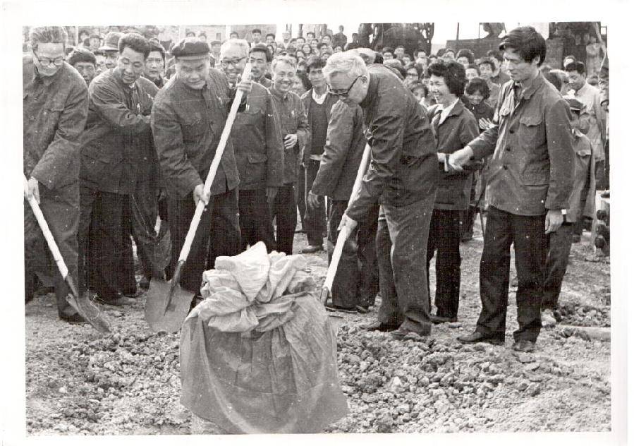 1981年4月23日,华罗庚在合肥(前排右二)为八号工程奠基。(受访单位供图)
