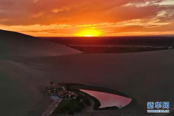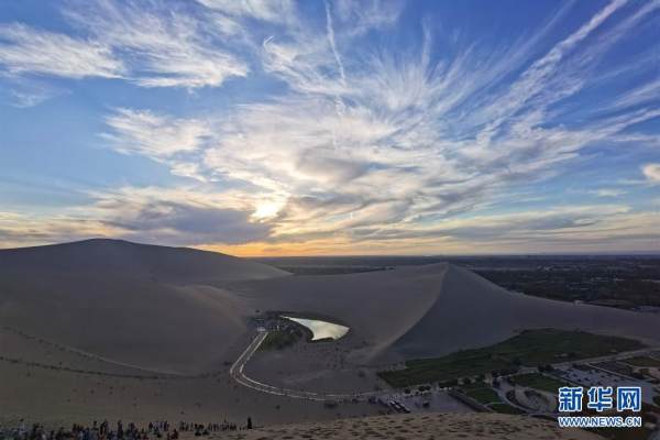 夕阳下的敦煌月牙泉(7月5日摄)。新华社记者 刘诗平 摄
