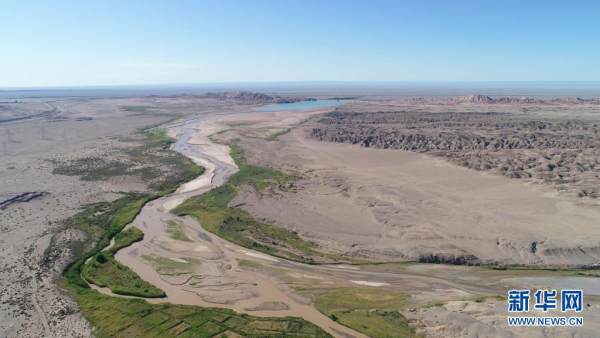 7月6日拍摄的党河水库及其上游(无人机照片)。新华社记者 刘诗平 摄