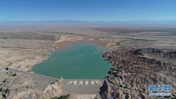 7月6日拍摄的党河水库(无人机照片)。新华社记者 刘诗平 摄