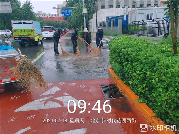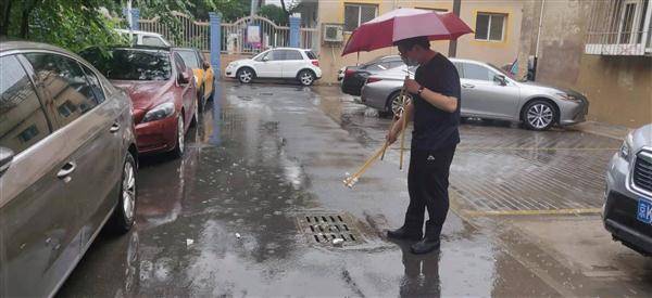 社区联合物业冒雨加强巡查,对积水路段及时进行排水处理,并重点对社区内排水雨箅子、低洼地段、地下室等易积水点位进行地毯式隐患排查,清理雨箅子杂物、污水井管道和生活垃圾等,在雨中吹响守护的号角,坚守在防汛第一线,保证社区居民的财产和出行安全。