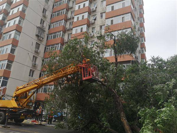 接到社区情况反馈后,街道办事处主任张晓磊、副主任毛剑威第一时间赶到现场进行指导,并迅速与自来水公司、园林局取得联系,让专业人员到现场对倒塌树木进行处理。在大家的配合下,对倾倒的大树进行锯断、清运,倒塌的枯树被顺利处置,安全隐患及时得到处理,保障了居民的安全。