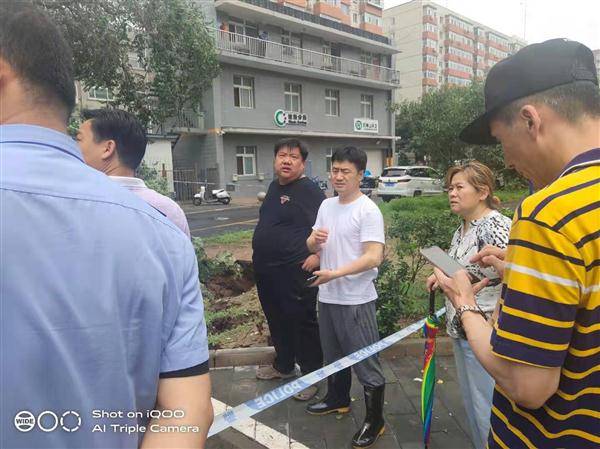 古城南里社区工作者在雨后隐患巡查中发现1号楼与2号楼之间的一棵大树发生倒伏,给居民造成了很大的安全隐患,为保障居民的生命和财产安全,社区立即启动突发事件应急措施,在路段两边设立安全警戒线,对来往行人进行路段绕行劝导,并迅速向街道报告险情。