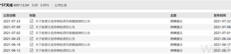 面对连续的大涨,*ST天成在6月11日晚、6月24日晚和7月8日晚发布了三次关于股票交易停牌核查的公告。